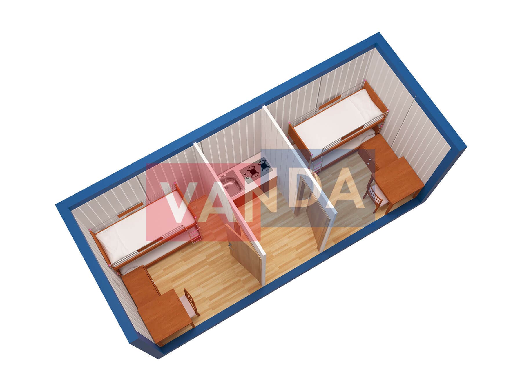 Металлическая бытовка без тамбура 5,85 x 2,4 - Оргалит ДВП