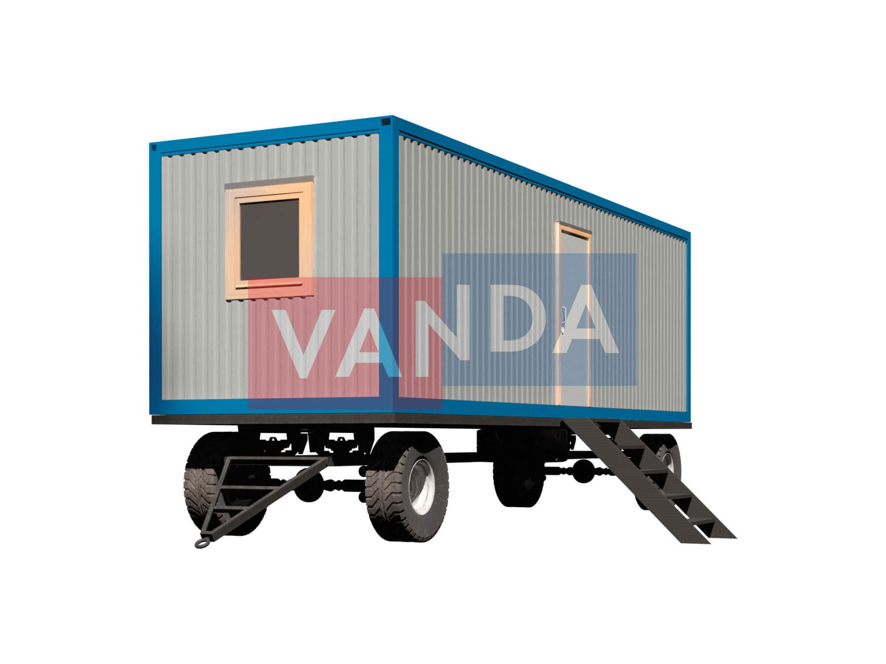 Вагончик на шасси 8,0 x 2,4 изготавливается из несущего каркаса (верхняя и нижняя обвязка): швеллер 100х50х3 мм., угловые стойки: сложно - гнутый угол 90х90х3 мм., крыша блок-контейнера: металл сварной 0,9-1 мм., качественная наружная отделка: оцинкованный профлист, внутренняя отделка стен: ЛДСП, внутренняя отделка потолка: Панели ПВХ, вспомогательный деревянный каркас (стены): брусок 40х75 мм., лаги пола: обрезная доска 40х100 мм., лаги потолка: обрезная доска 40х100 мм., выполнено утепление: Минеральная вата «ISOVER» – 50 мм. и пароизоляция: плёнка техническая, черновой пол состоит из: обрезная доска 20 мм. (2 сорт), чистовой пол покрыт: ДСП строительное 16 мм., отделка пола выполнена из качественных материалов. Контейнер комплектуется окнами: деревянное, двойное остекление 800х1000, входной дверью: ДГ 21-8 обшита снаружи оцинкованным листом, врезной замок и внутренними дверями: ДГ 21-8 (при наличии перегородки). Если в БК присутствуют перегородки, то для них используется: брусок 40х50 мм.