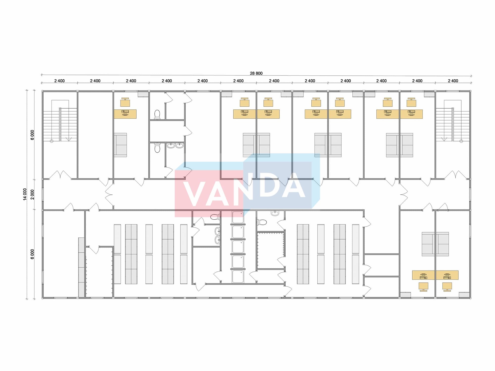 Проект вахтового посёлка 14.0х57,6 14x57.6 806.4 OSB 9 мм. Оцинкованный профлист 20 700 000 р. Уточняйте у менеджера