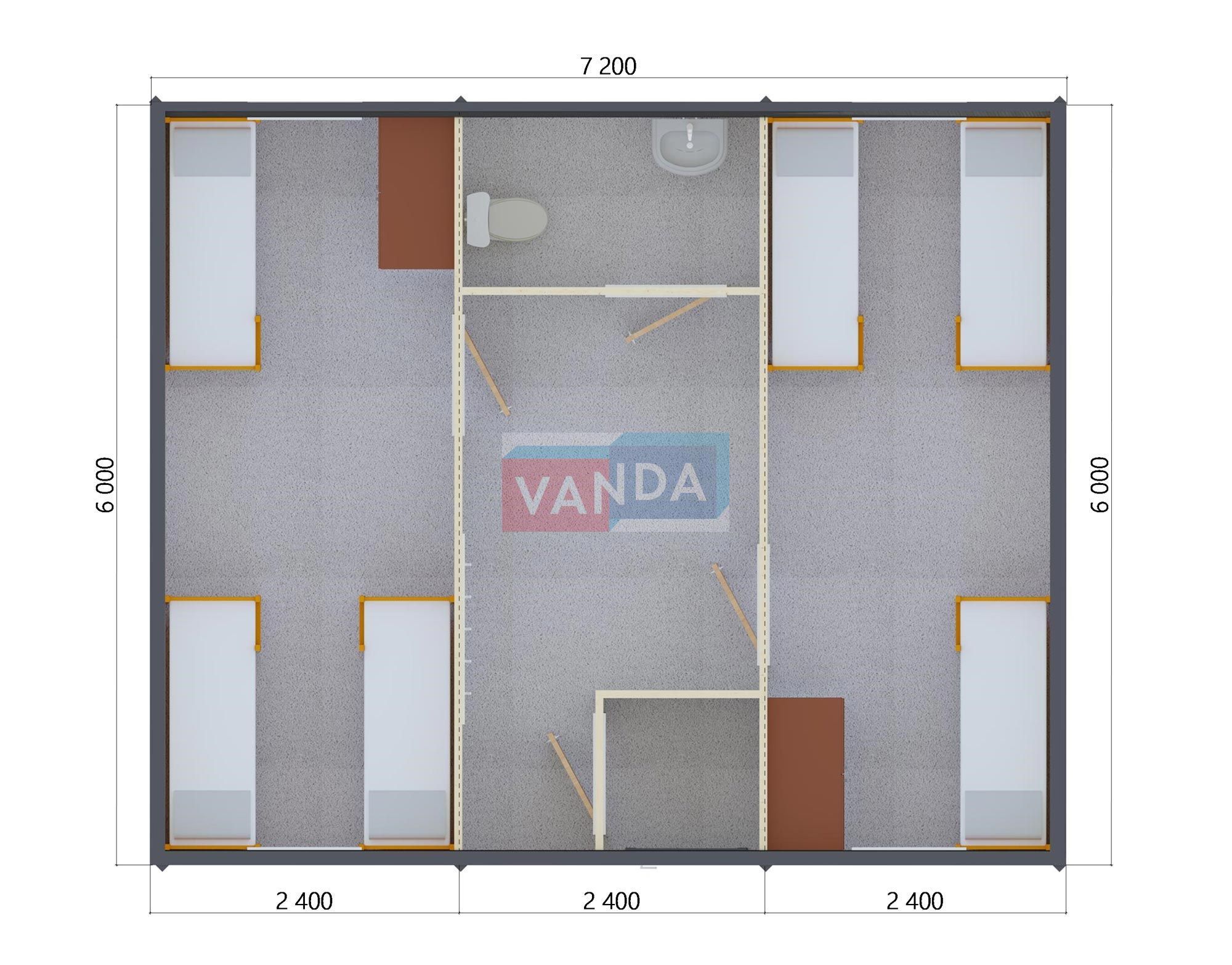 Модульная бытовка с плоской крышей 7.2x6.0 7.2x6.0 43.2 OSB 9 мм. Оцинкованный профлист 650 000 р. Уточняйте у менеджера